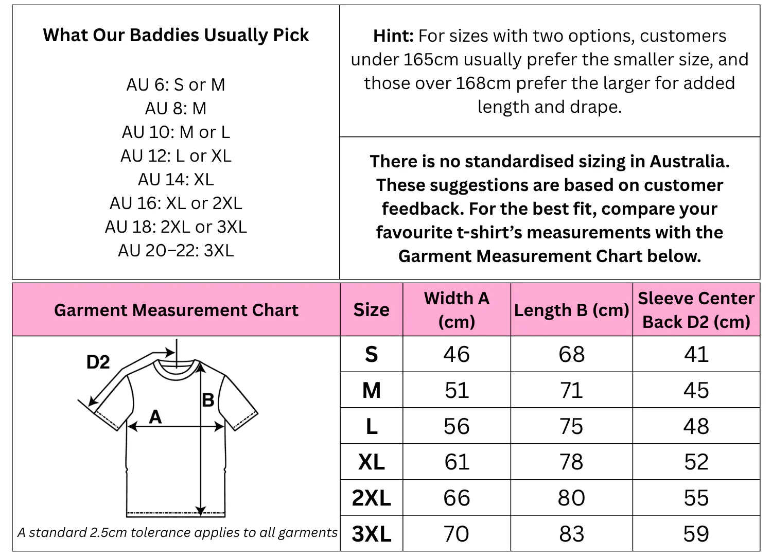 - Colours may vary slightly between garments due to dying process