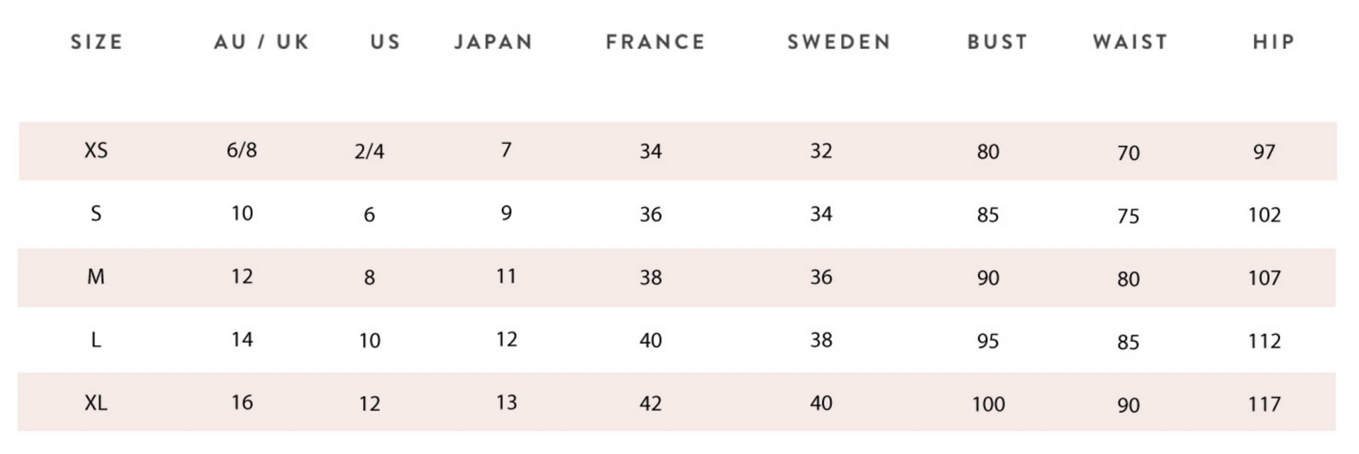 - Elastic shirring through bust, waist and hips