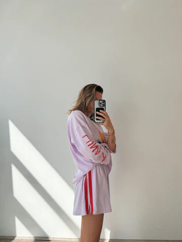 The Hearts on Fire shorts - cute, comfy and flatter all the right places. Side split and red contrast side stripes. Elastic waistband and side pockets.